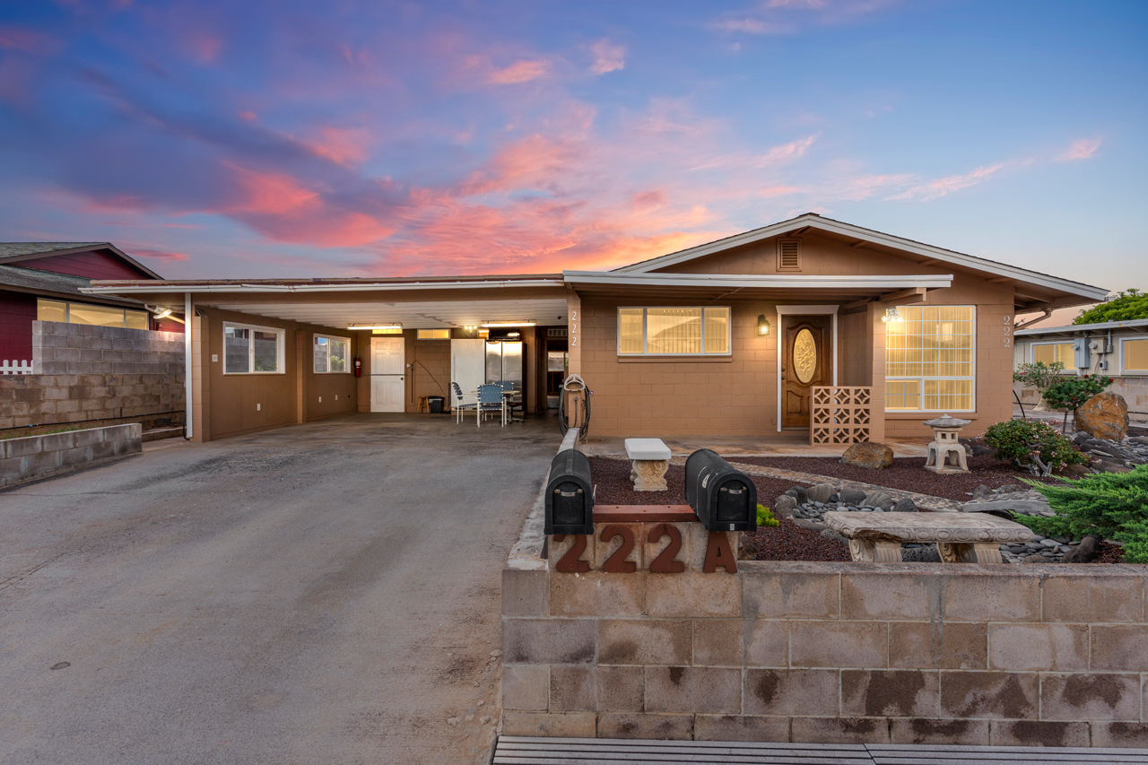 222 W Hawaii Street is a must see residential compound in Kahului with so much to offer. The property is R-2 zoned and move in ready. Excellent multigenerational family compound or great prospect for the savvy investor! Main home is a 3 bedroom, 1 bath residence that was remodeled in 2005. The 2 Bedroom, 1 Bath detached ohana was renovated in 2023. From the moment you step foot on this property, you will immediately notice the pride of ownership and meticulous landscaping. Excellent curb appeal, great separation of space between the 2 dwellings, lots of off street parking, and the nostalgic feeling of old Hawaii. Both of the residences feature covered carports and ample storage. There is also a spacious, covered lanai area which is a lovely space to relax in. They just don’t make them like they used to! The indoor/outdoor living arrangement also makes 222 W Hawaii the perfect place for entertaining your friends and family. Located on a well-established street in a very desirable neighborhood, this property is extremely convenient to central Maui’s medical facilities, professional offices, parks, schools, and shopping. With inventory at a record low in Kahului, you do not want to miss out on this opportunity!
