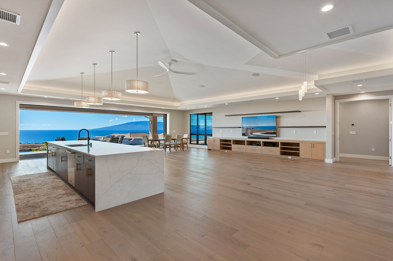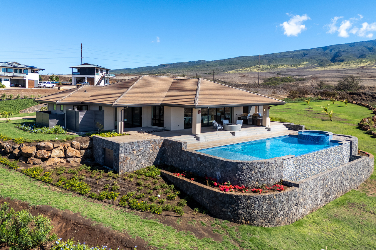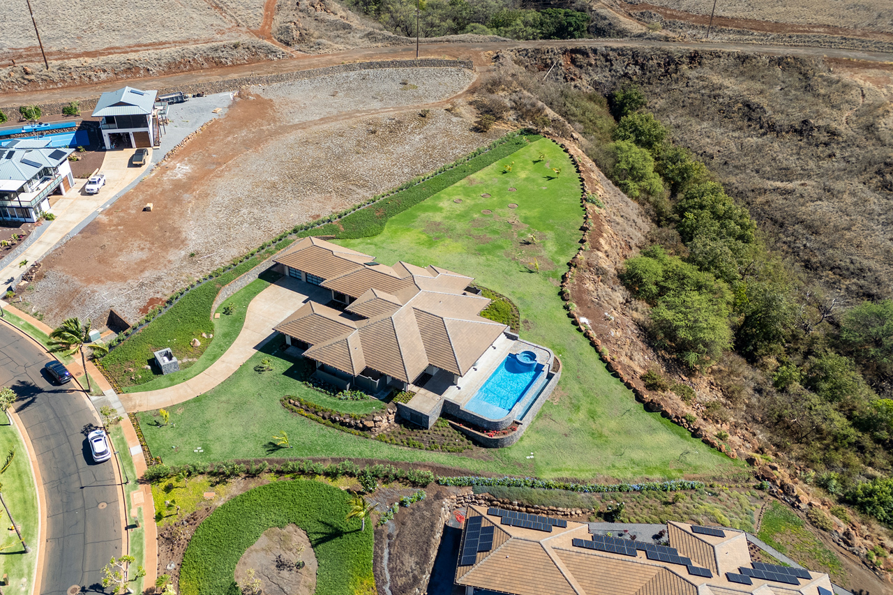 Welcome to your dream home in the prestigious gated community of Lanikeha! Situated on an expansive 1-acre lot at the edge of Anapuni Loop, this estate provides breathtaking panoramic views of the ocean, West Maui Mountains, and the neighboring islands of Lanai and Molokai. The open-concept single level floor plan and expansive windows seamlessly connect indoor and outdoor spaces, allowing natural light and stunning vistas to take center stage. Completed at the end of 2024, this newly constructed masterpiece offers modern luxury and effortless elegance. Boasting 4 bedrooms and 4 bathrooms across 4,303 square feet of thoughtfully designed interior living space, this home perfectly balances comfort, modern finishes and sophisticated design. With ample space for a future detached ohana, this property offers incredible potential to create the legacy estate of your dreams. This property offers the rare mix of privacy, jaw dropping views and all the benefits of luxury living in Lanikeha.