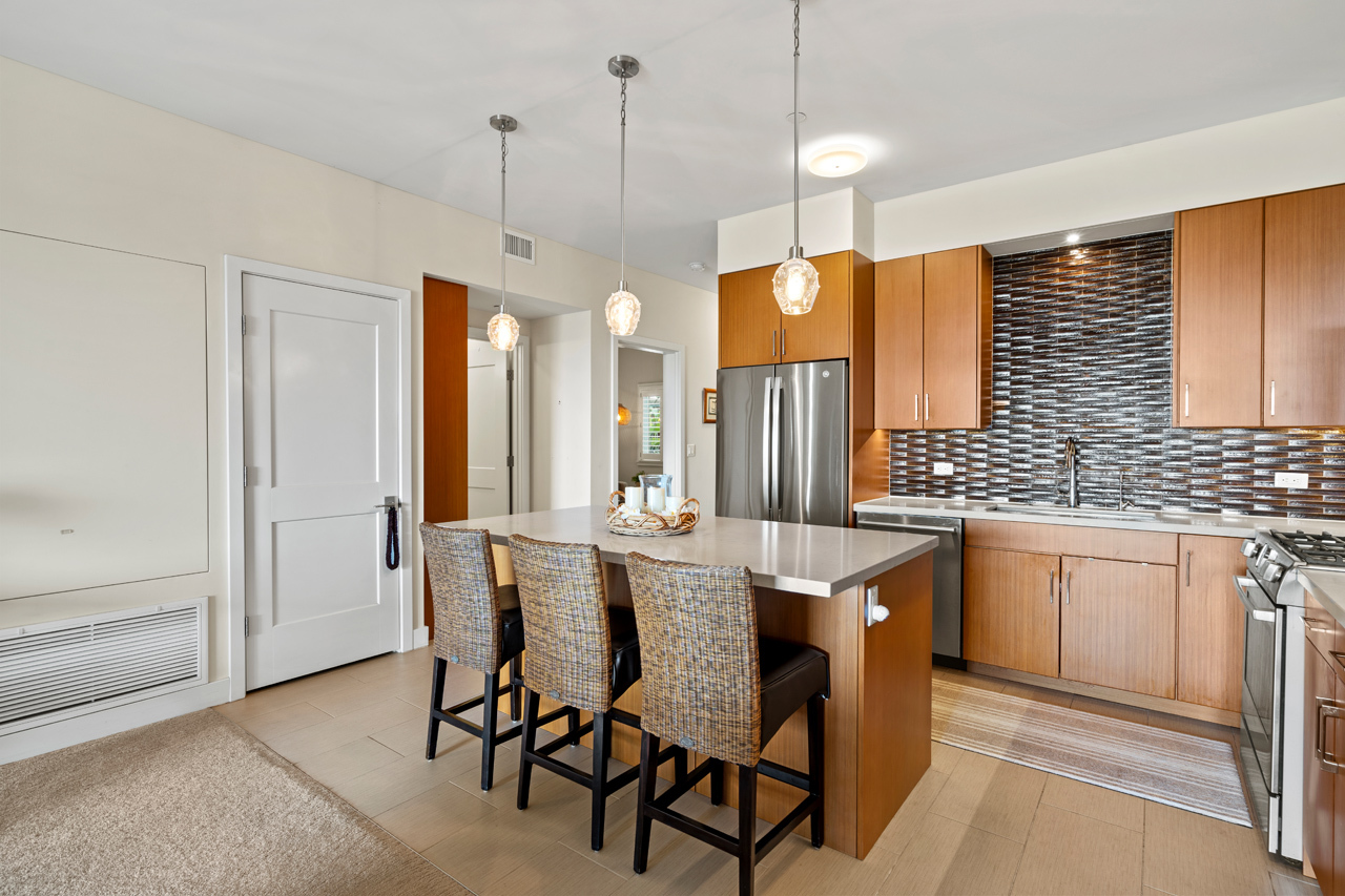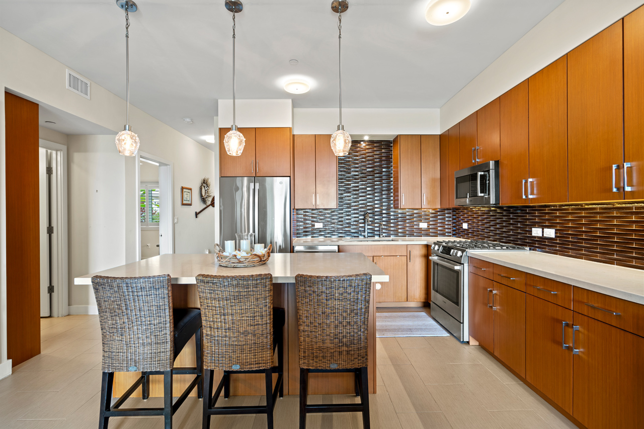What if your home offered one of the most breathtaking ocean views in all of Wailea? This Keala O Wailea 59-103 delivers a front row seat to Maui’s most iconic scenery. Experience elevated island living in this beautifully appointed 2 bedroom, 2 bathroom villa located within the highly sought after Keala O Wailea community. Built in 2018, this exclusive 70 residence enclave is perched along the Wailea hillside, offering commanding panoramic views of the deep blue Pacific Ocean, dramatic sunsets, and epic seasonal whale activity. This 1,248 square foot single level residence welcomes you with floor to ceiling retractable glass doors that frame endless ocean views and flood the interior with natural light. Contemporary finishes include Bosch stainless steel appliances, quasar countertops, quality tile and carpet throughout, and a refined open concept design. The living area, kitchen, and primary bedroom are all positioned to capture the sweeping ocean backdrop, creating a seamless connection between interior comfort and Maui’s natural beauty. Both bedrooms are generously sized and thoughtfully separated for privacy, with the primary suite featuring a walk-in closet and an en suite bathroom with dual vanities. The kitchen blends luxury and function with premium materials, a smart layout, and ample storage. Indoor living flows effortlessly to the covered outdoor lanai, an entertainer’s retreat, complete with a BBQ, spacious seating area, and unobstructed views ideal for sunset evenings and unforgettable whale watching. Building 4 offers a peaceful and private setting within the community, completing this exceptional Wailea lifestyle opportunity.
