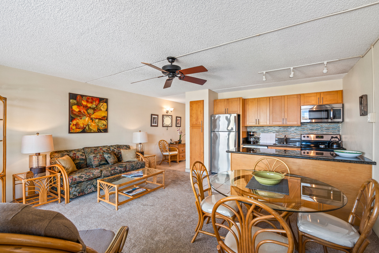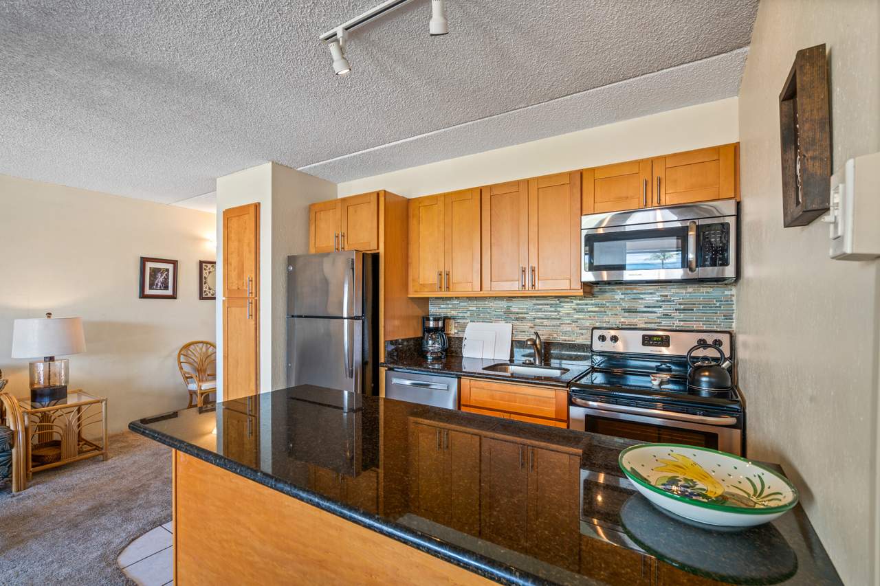 The one you’ve been waiting for at Kihei Kai Nani #248. HOTEL ZONED and move in ready! Your Maui escape officially begins here! Perfectly situated in the vibrant heart of South Kihei, you simply cannot beat this location in Hawaii. Just steps from the golden sands of Kamaole Beach Park II, this beautiful 1-bedroom, 1-bath, 621 sq. ft. vacation rental offers both comfort and island convenience. Easily one of the best locations in the complex overlooking the pool with ocean views. The large bedroom offers a serene retreat with oversized windows and mirrored closet doors, while the bathroom showcases a walk-in shower, modern tilework, and a granite vanity. Offered fully furnished, this turn-key unit is ready for immediate enjoyment. Kihei Kai Nani #248 also enjoys extra privacy, set away from the main road, while still being conveniently close to the center of the complex. Kihei Kai Nani places you in the middle of South Kihei’s best, with restaurants, shops, and entertainment right outside your door. On-site amenities include a swimming pool, multiple BBQ areas, and a community pavilion. Paradise awaits at Kihei Kai Nani 248!