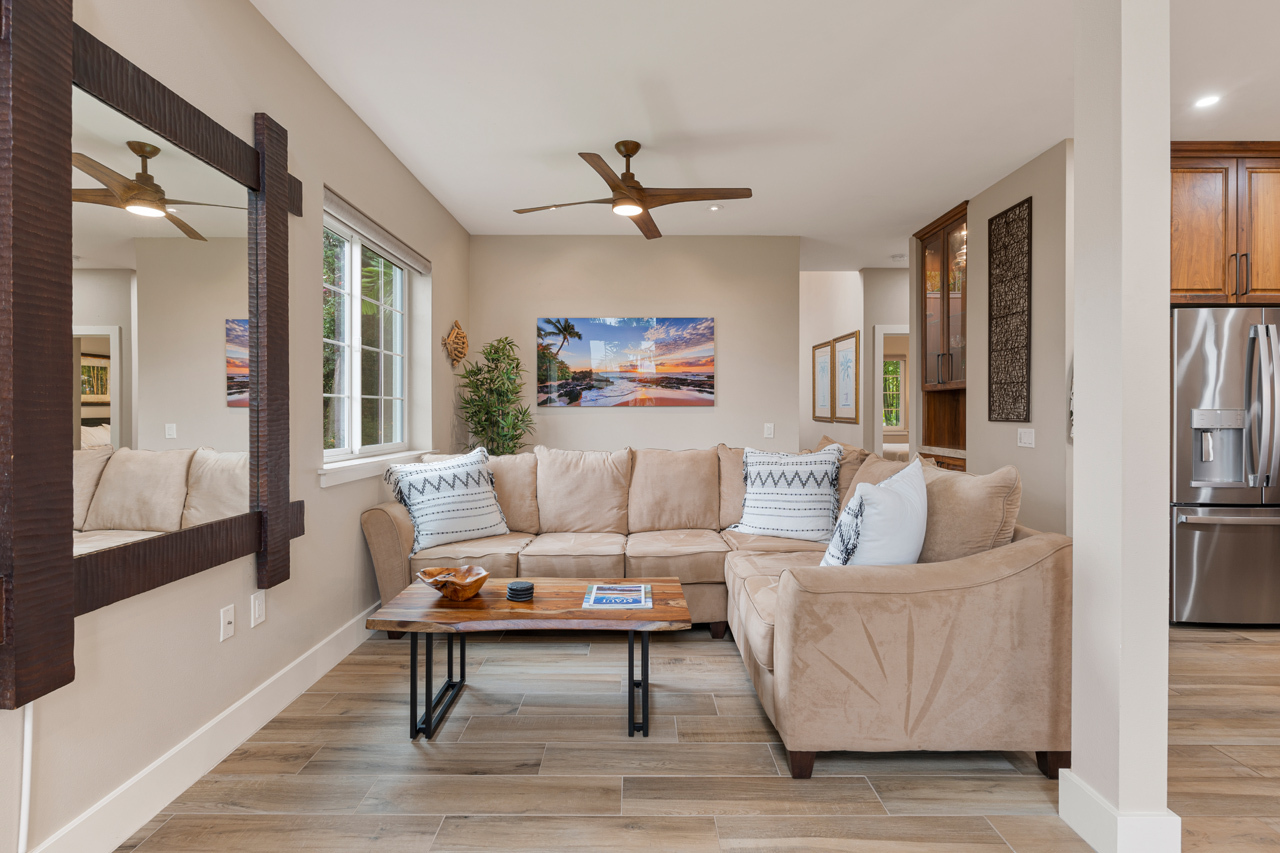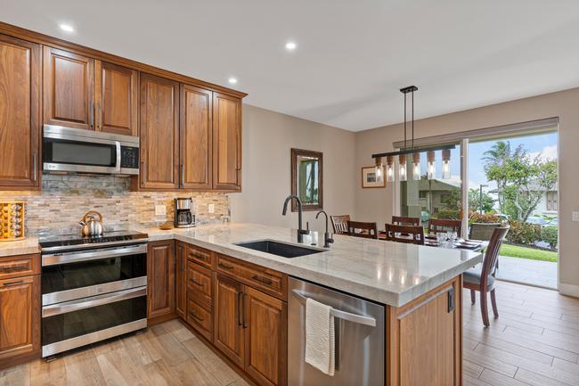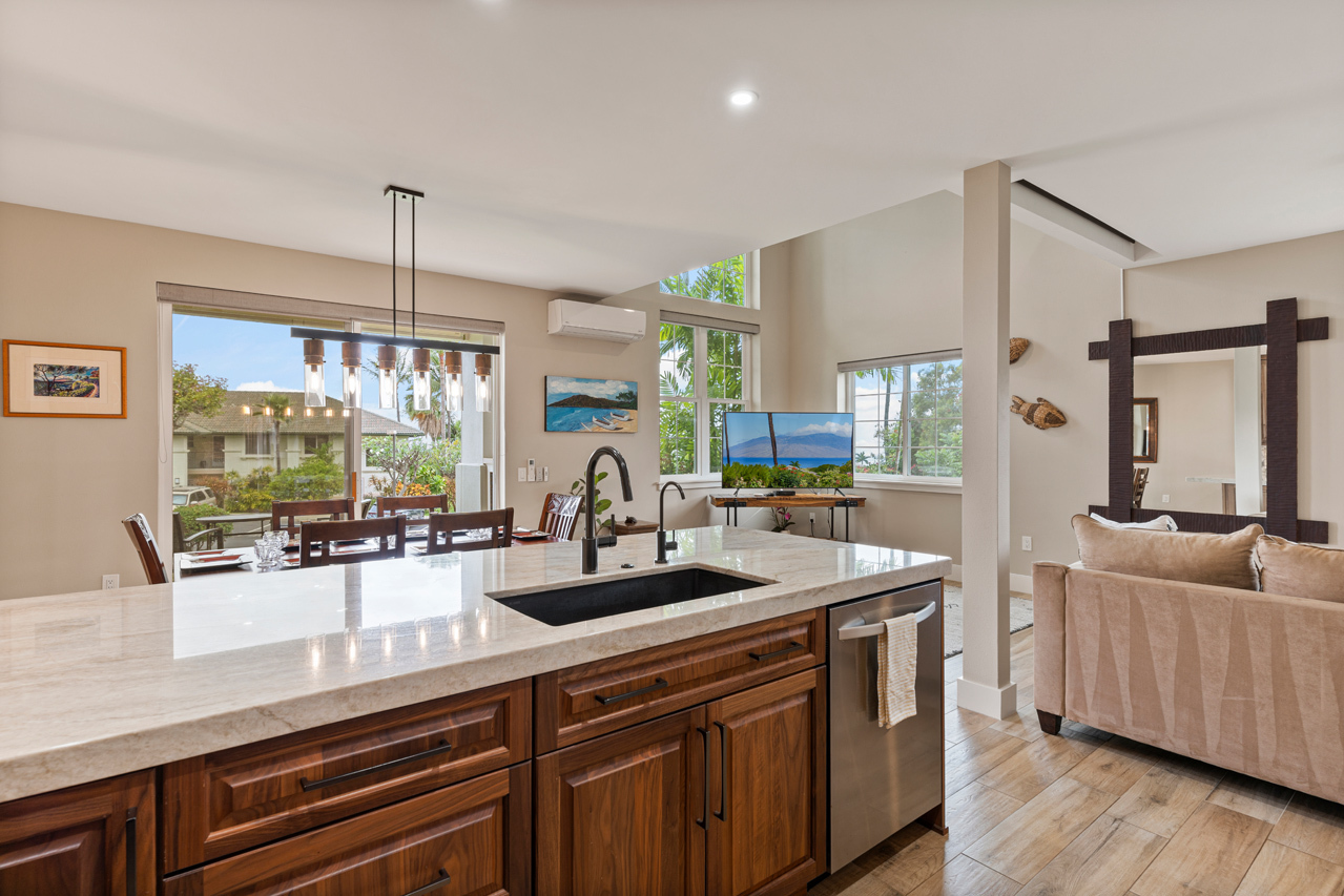 Welcome to your dream home in Wailea Fairway Villas! Nestled in the coveted B building, this exquisite 3-bedroom, 3-bathroom corner villa has been meticulously remodeled, comes fully furnished, and boasts stunning ocean views. Lush landscaping and grass yards embrace this Villa on three sides creating the perfect location for privacy and tranquility with fruit trees just above your front door. A recent renovation exceeding $400K has transformed this property into a haven of luxury with incredible attention to detail throughout. The craftsmanship and attention to detail must be seen in person to be fully appreciated. Interior features include porcelain tile flooring, custom walnut cabinetry, and a professionally designed kitchen with high energy efficient stainless steel appliances throughout. Stay cool and comfortable year round with the brand new 4-unit split system AC. Villa B-103 features two primary suites upstairs as well as an office space in the spacious loft area. Downstairs, you'll find the guest suite, a full bathroom, the chef’s kitchen, and the great room area for relaxation and entertainment. The Wailea Fairway Villas is ideally situated along the Wailea Blue course, offering unparalleled ocean views and convenience for golf enthusiasts. The community clubhouse features a beautiful pool, a BBQ area and an exercise room. There is also stand up paddle board and kayak storage for homeowners. Villa B-103 is unquestionably one of the best purchase opportunities available in Wailea under $2M! Nearby are many resort amenities including the best beaches on Maui, elite shopping opportunities, and first class restaurants.